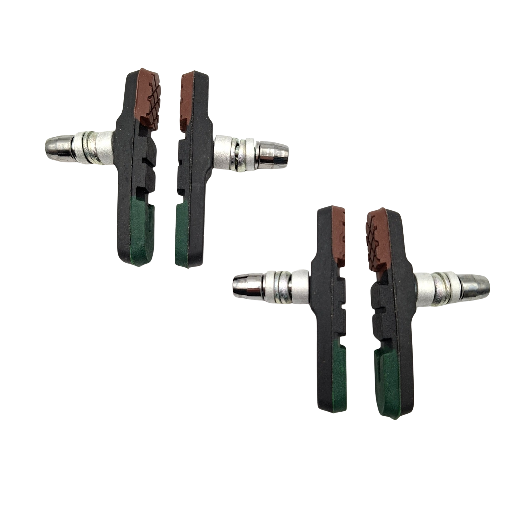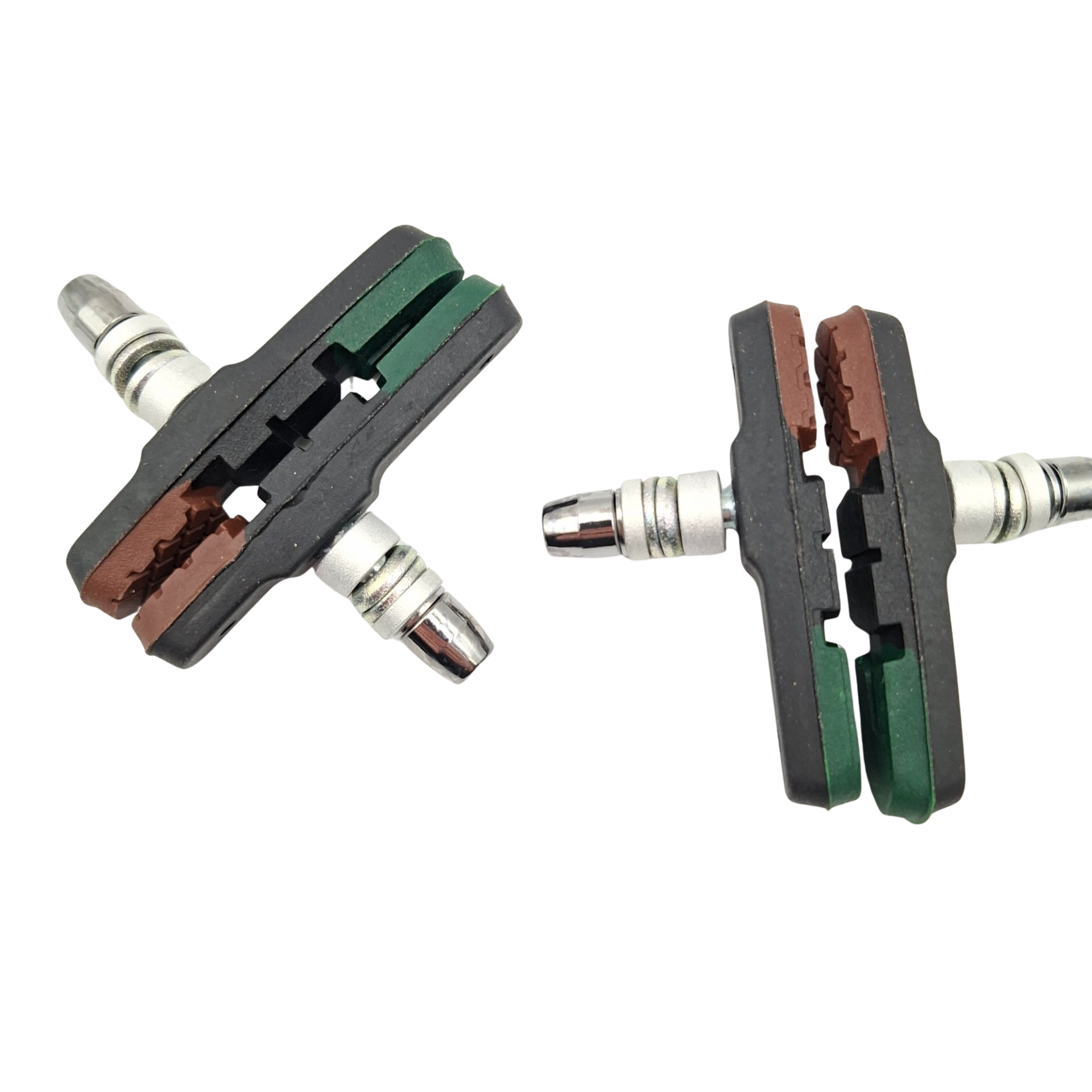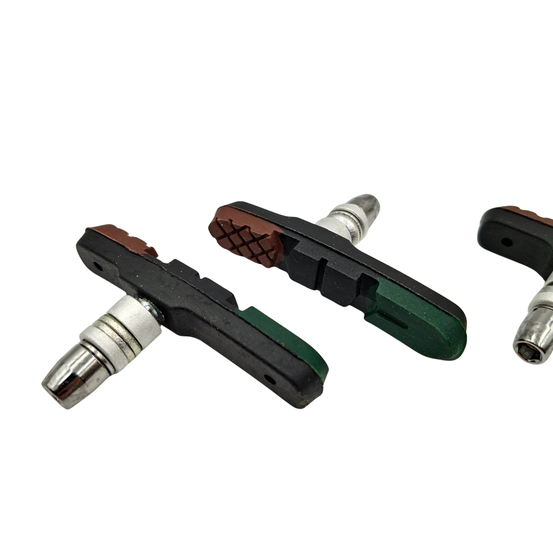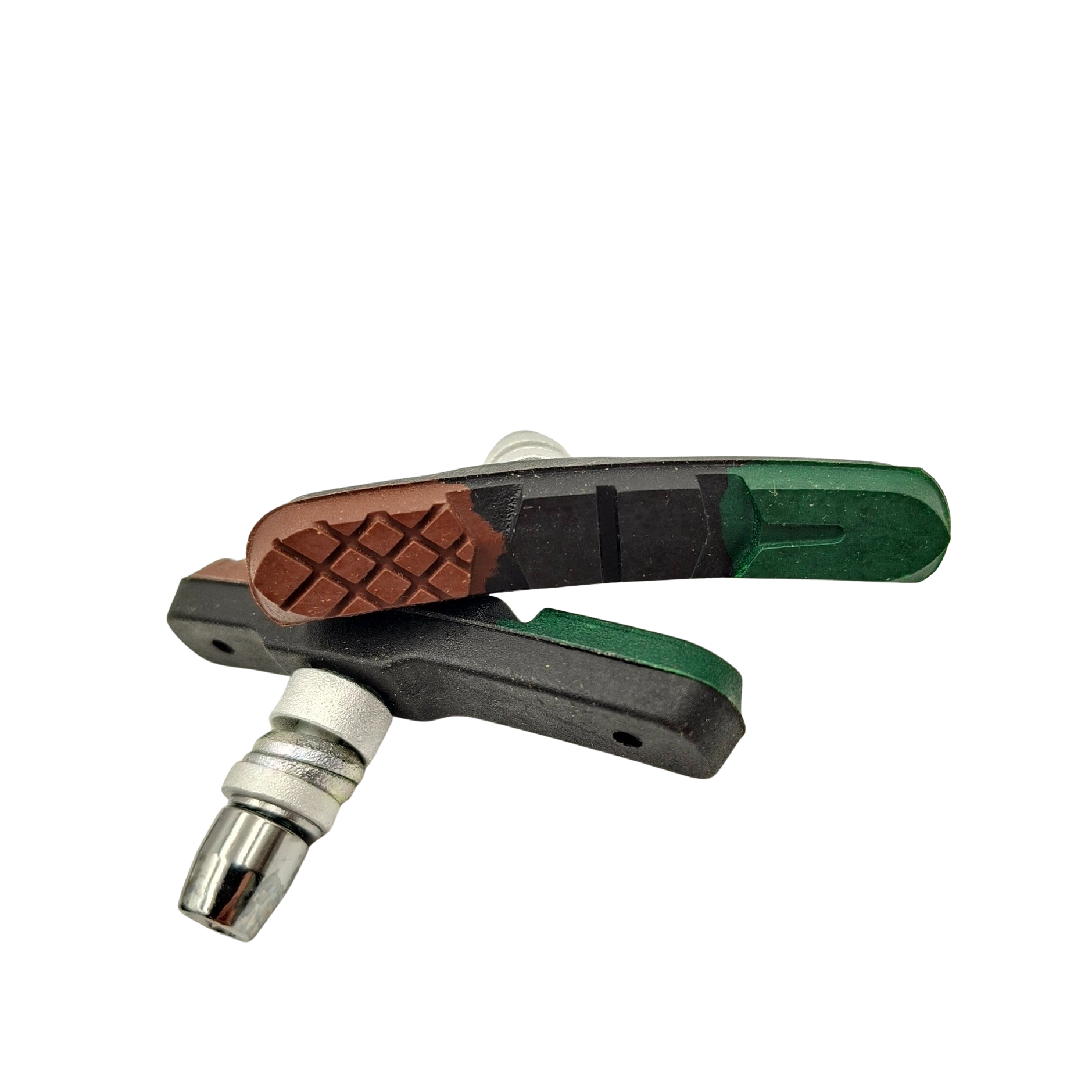 MTB V-Brake Blocks – Triple Compound 72mm Pads – Green/Brown/Black – Universal A.K. Fitting – 2 pairs