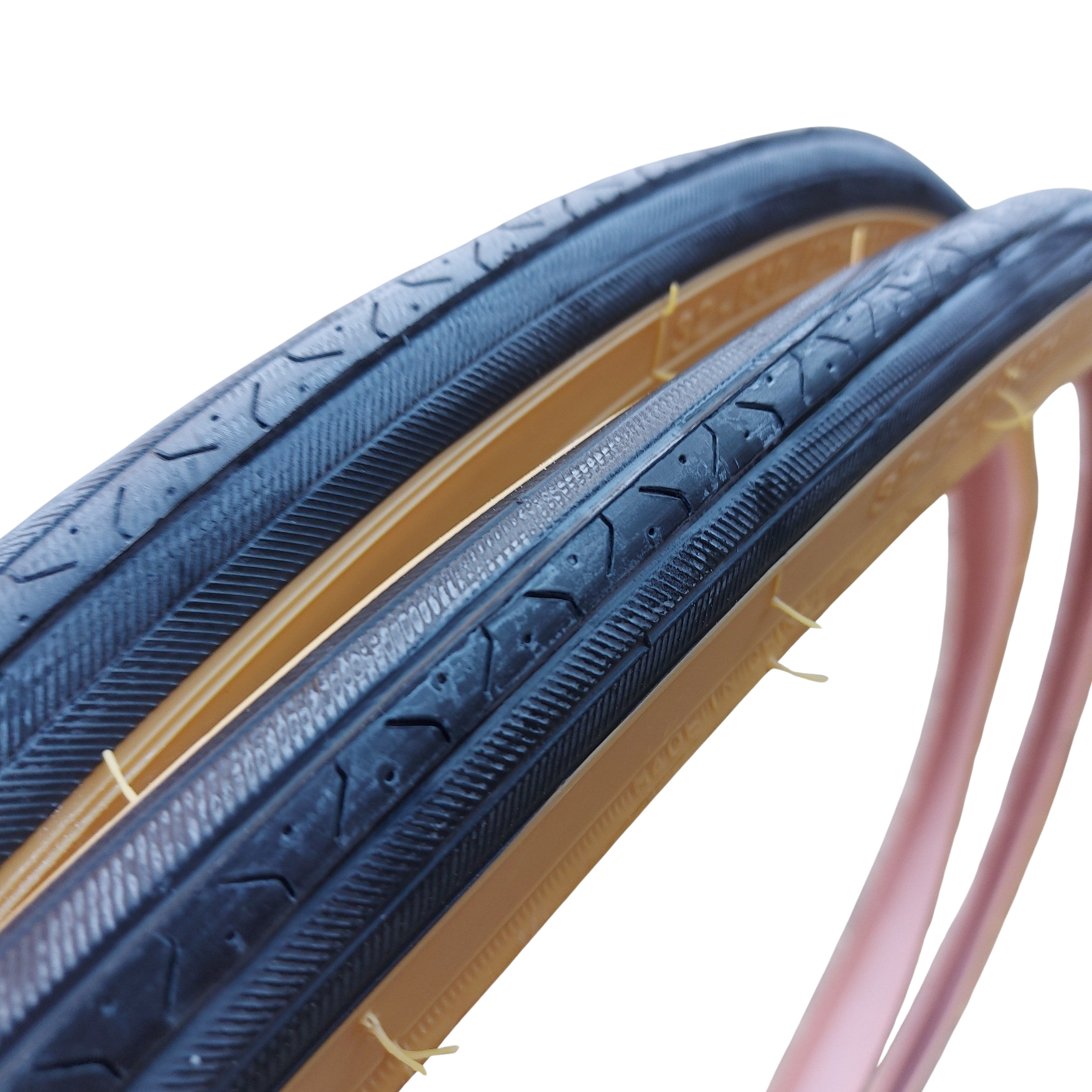 Pair of 27 x 1-1/4″ Tyres (32-630) – Amber Wall Classic Road Sports Bike Tyres | Budget Wire Bead Road Tyres