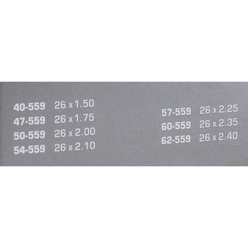 26×1.50 | 26×1.75 | 26×1.90 | 26×1.95 | 26×2.00 | 26×2.10 | 26×2.20 | 26×2.25 | 26×2.30 | 26×2.35 | 26×2.40