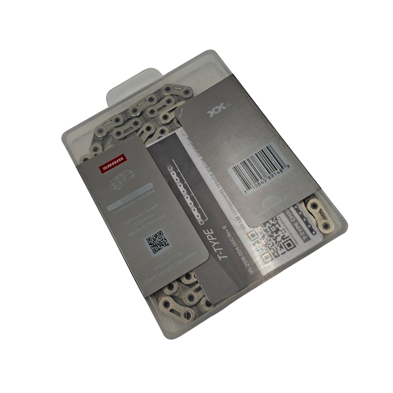 SRAM XXSL Eagle T-Type Chain – Silver Hollowpin, 126 Links w/PowerLock PVD – 12-Speed