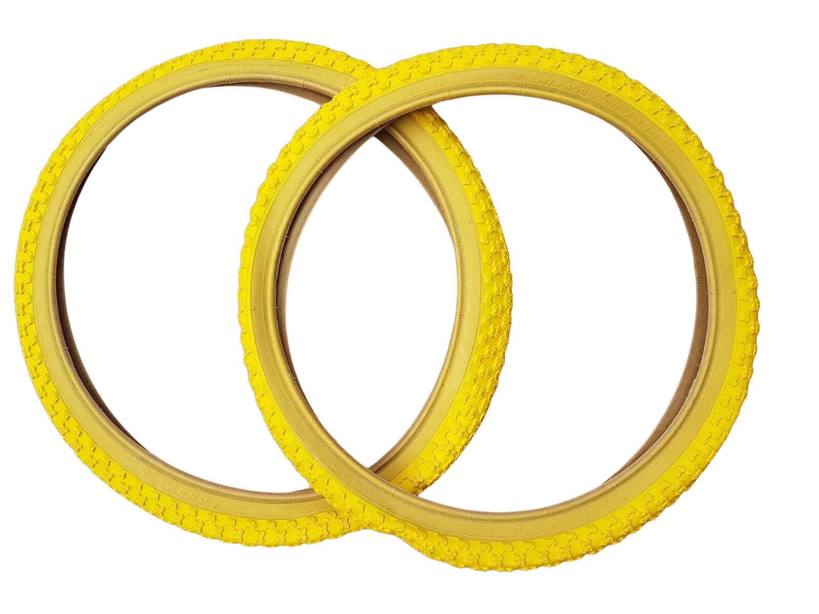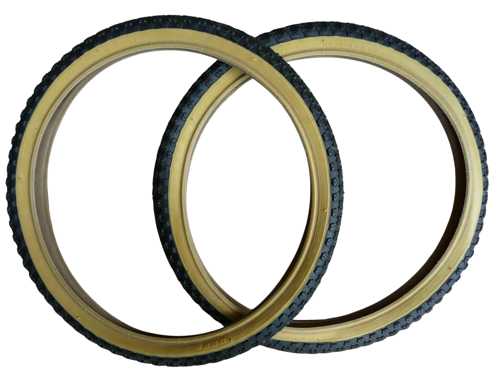 Upgrade your junior or BMX bike with a classic set of Air Comp III tyres, designed for smooth and responsive performance. With their iconic knobbly tread pattern and eye-catching amber/tan sidewall, these tyres offer both style and function.